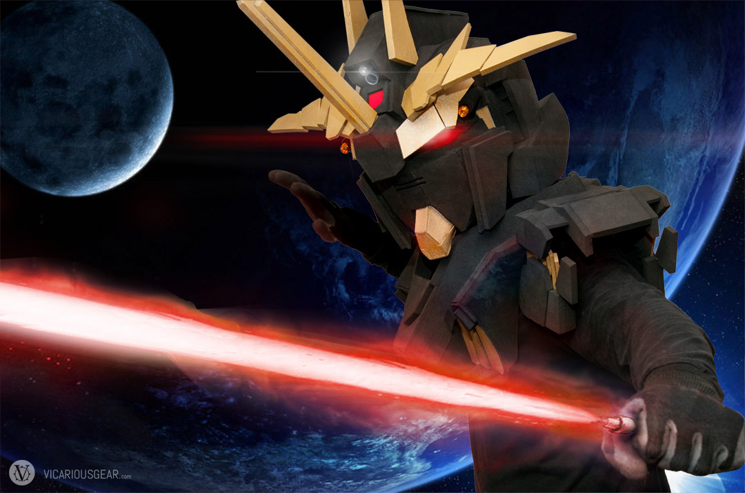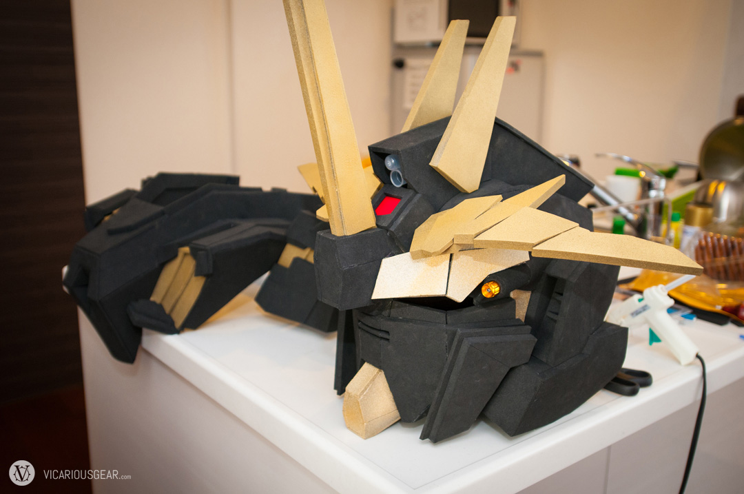 Gundam Unicorn Banshee almost ready for some costume party action. Final material upgraded to foam so I could play with slightly more complex curves. The cardboard mock-up was great for sizing tho.