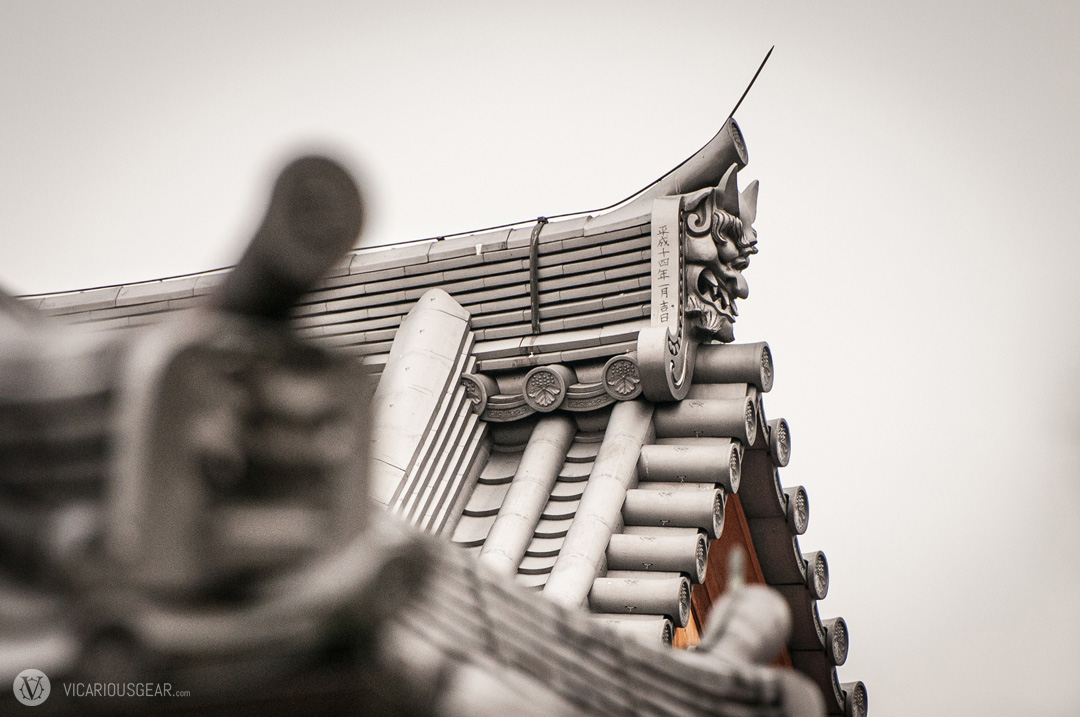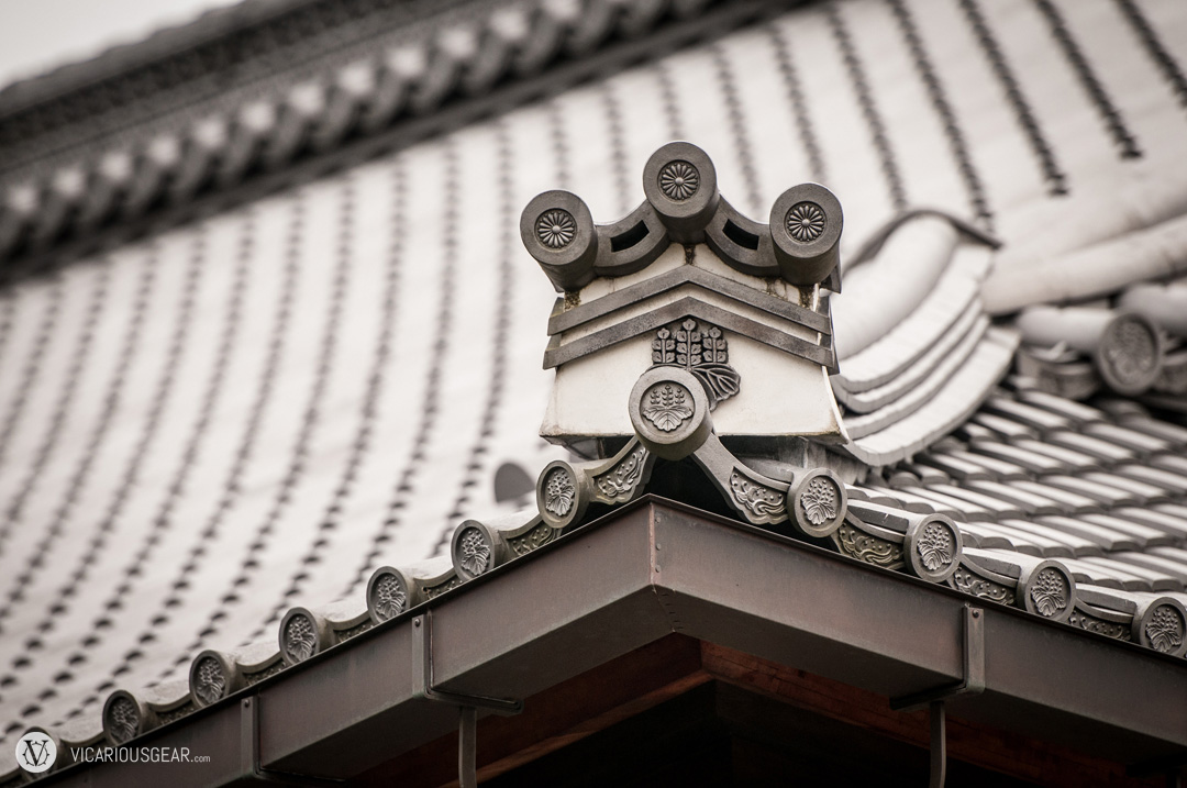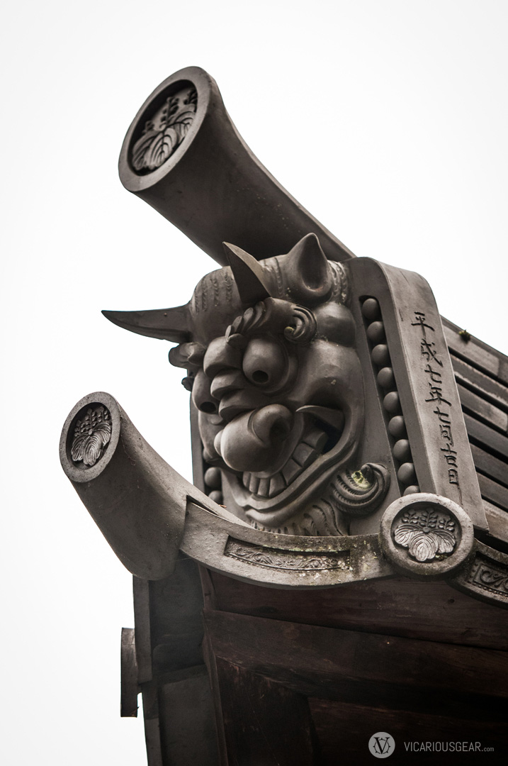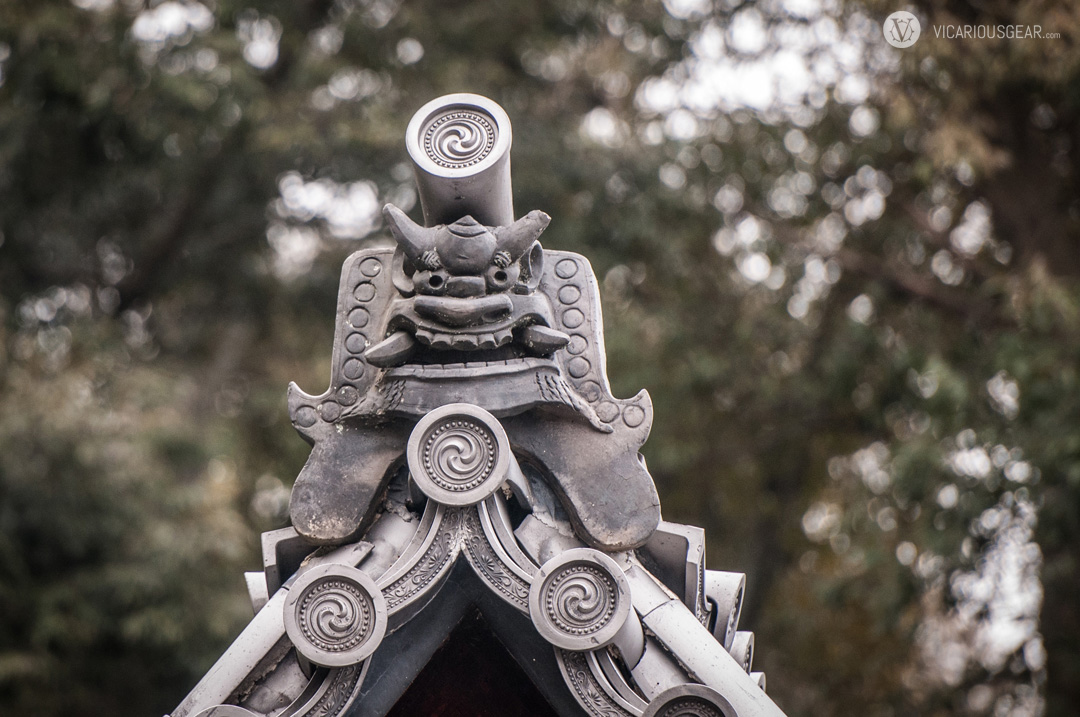 In a previous post, I mentioned my growing infatuation with rooftop decorations spotted at Japanese shrines and temples. More specifically, the onigawara 鬼瓦 (“demon” or “goblin tile”) variety with their limitless styling variations. While exploring the Kinkaku-ji temple in Kyoto, I discovered a ton of these design curiosities. Apparently they are intended to ward off evil spirits of fire.