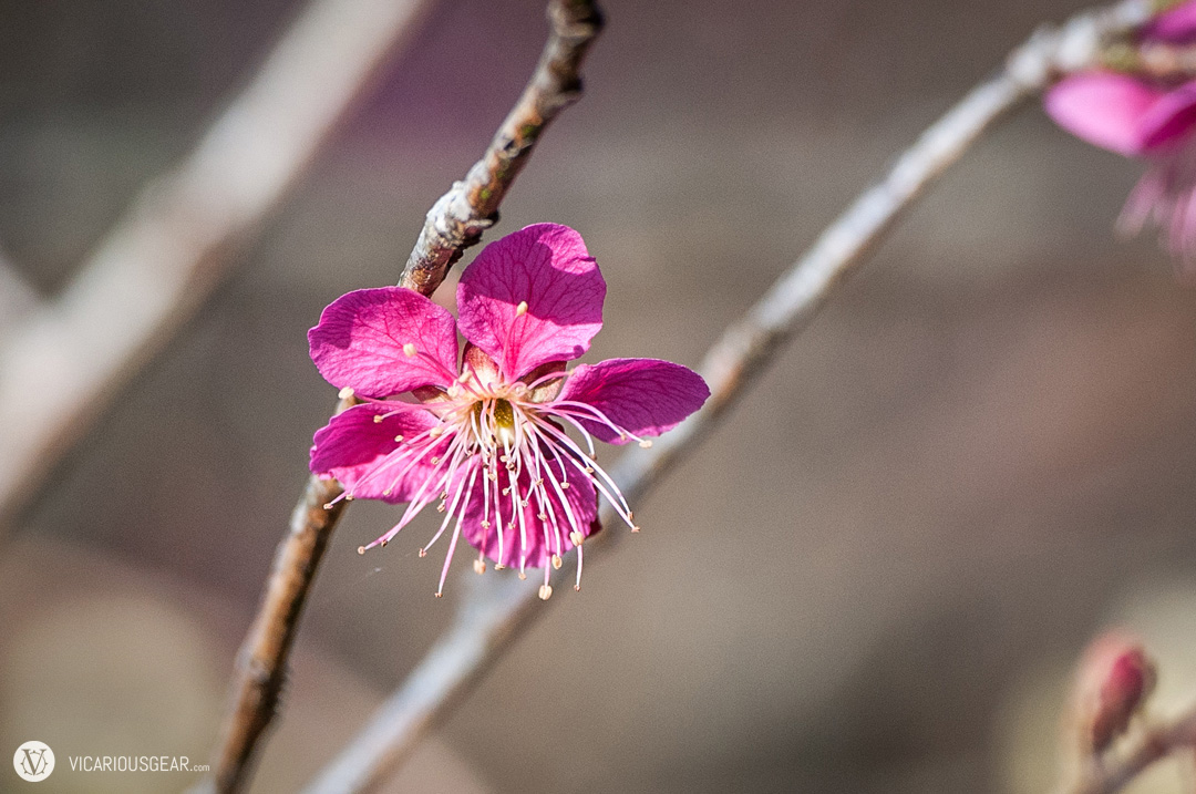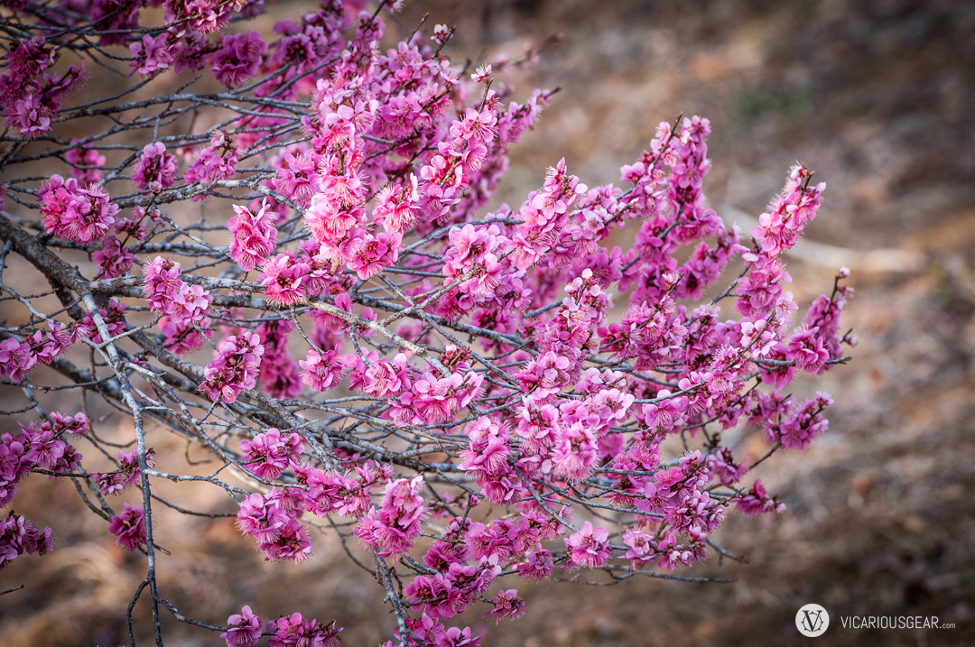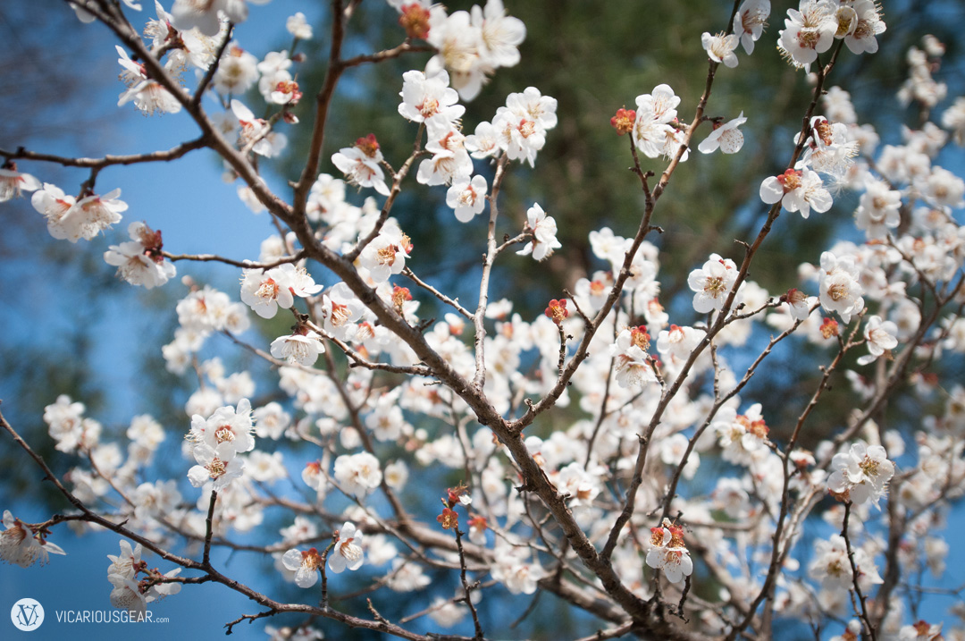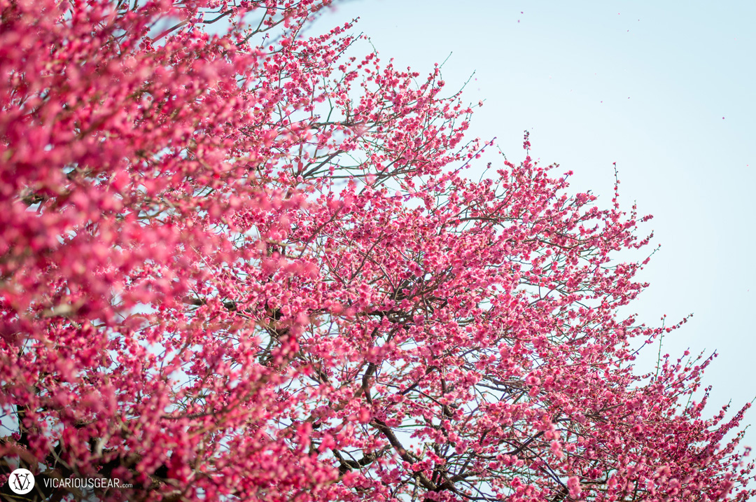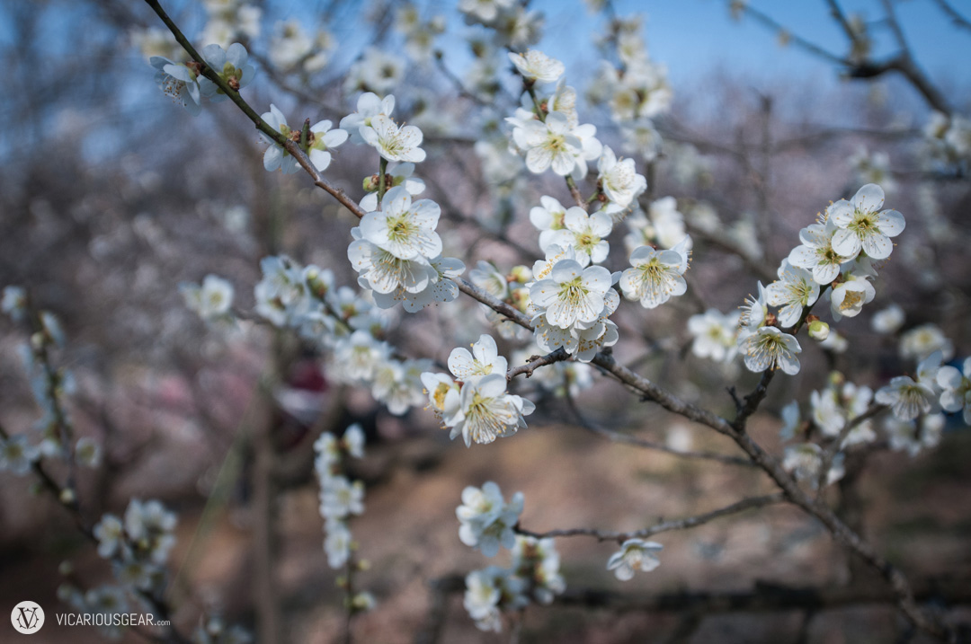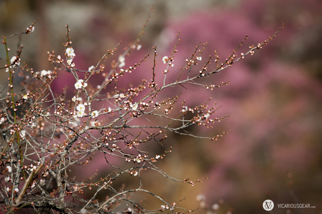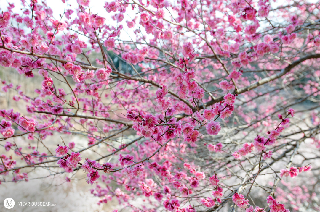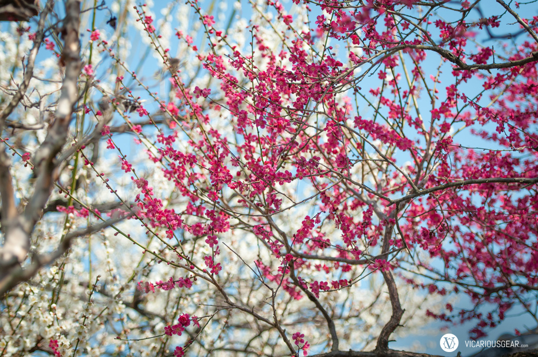 After stumbling across the beautiful plum blossoms during my bike ride through Kamakura a couple of weeks back, I was eager to share the experience with Mimi. After searching a bit, we found a spot about an hour west of central Tokyo that was hosting a Ume Matsuri (Plum festival) the following weekend. The town is called Yoshino Baigo and spans between Hinatawada Station to Futamatao Station. Immersed in around twenty-five thousand of the pink and white trees it is really a surreal sight. We initially planned just a couple of hours of looking at the blossoms but ended up just becoming lost in the variety of flowers and calm feeling of Ume-no-Koen park where most of the trees are clustered. Next time, we will follow the lead of others and bring some food and wine for a relaxing picnic. The photos below mostly cover what was found in Ume-no-Koen park. I’ll leave the other flowers, street food and festivities from the Ume Matsuri for the next post.