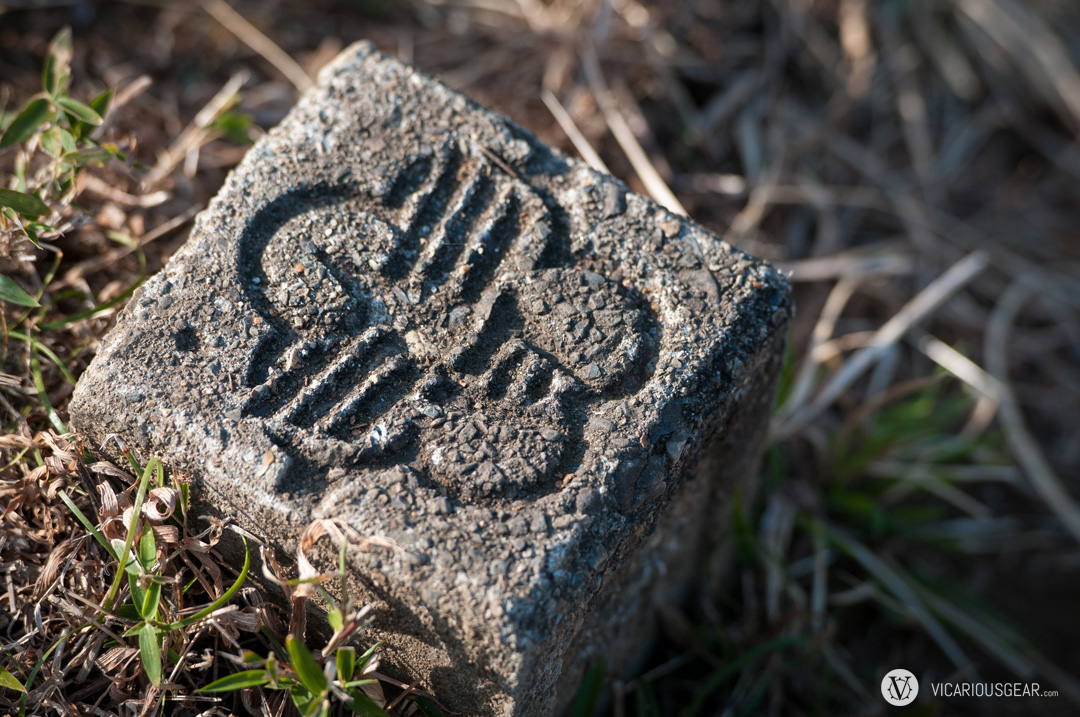 I only found one of these marking stones along the footpath in the park. I thought the stylized flower graphic on it was pretty neat.