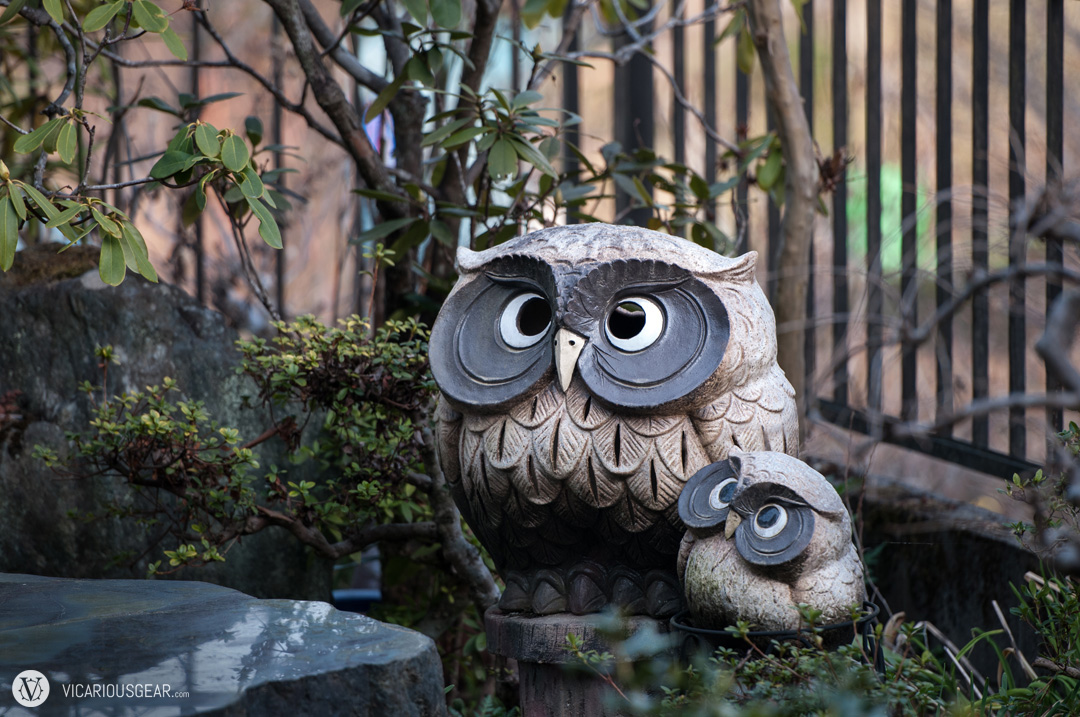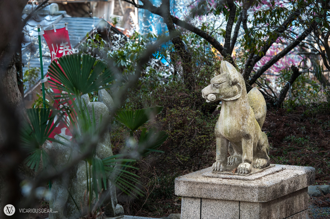 A statue of Inari (fox-like spirit/god of the shinto religion) in front of a small shrine on the way out. Quite a fitting choice for the area.