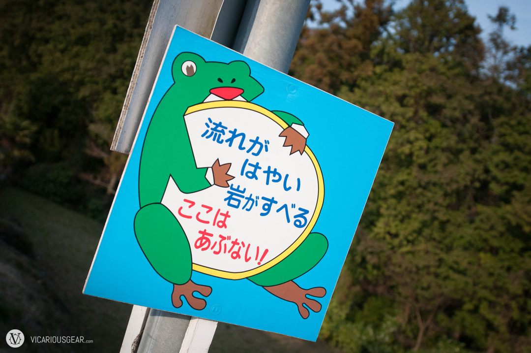 By the time we finished eating all the street food, we felt a bit like this fat frog. The sign was some sort of slippery bridge warning.