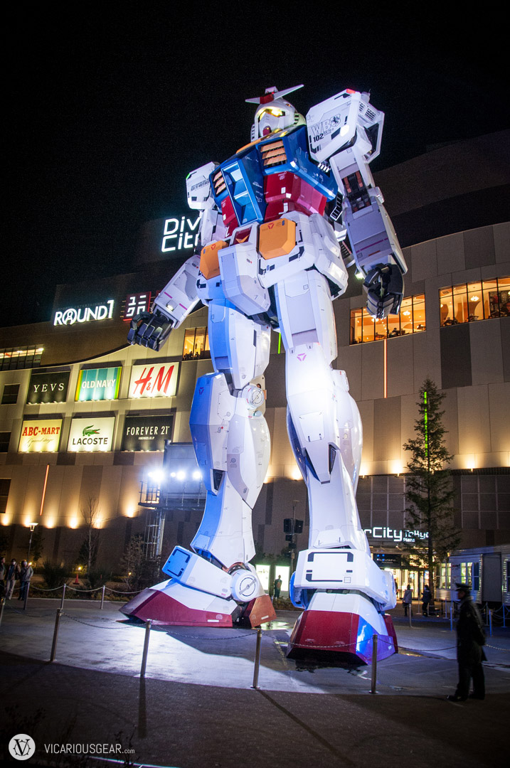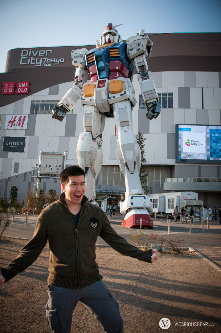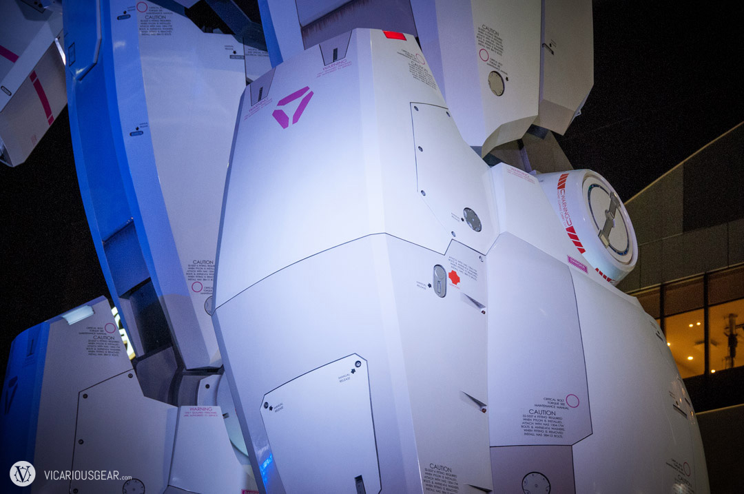 Being the huge Gundam fan that I am, it was criminal that I took this long to visit the 1:1 scale RX-78-2 that stands in front of the Diver City Plaza in Odaiba, Tokyo. Well, Mimi and I finally made it there a couple of weeks ago and it was better than expected. The Gundam has great amounts of detail and an overall nice finish to the outer surface. Fortunately, Diver City Plaza is a pretty nice mall so we were able to occupy some time between viewing the Gundam during the day and seeing the evening light shows. Next time I’ll have to return wearing my Gundam Banshee costume. I will probably wait until I have a beam saber to carry since I know everyone around here can’t get enough of bright flashy lights. Videos from the light shows are coming up next.