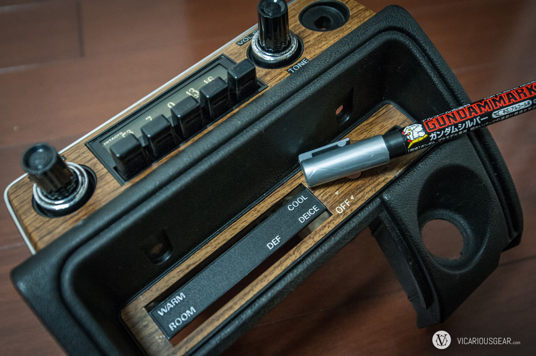 After searching on Yahoo Japan for a while, I found a pair of panels and an original radio for 4000 Yen (~$40 USD). For the price, I couldn’t resist cleaning up the area and getting rid of the gaping hole left by the radio removal. Getting a few spare switches and control knobs was an added bonus.