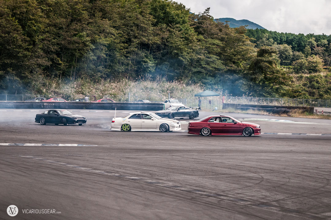 Fortunately for us, the drift course is open regularly and there were a bunch of drivers out there practicing. After paying 1000円 (about $10) to enter the Fuji Speedway grounds, we made our way over as spectators. This was my first time going to one of the Japanese drift tracks and I was pretty amazed at how many grassroots drifters were out practicing. The amount of rubber burnt in this country must be on par with beer consumption. One other aspect that I found really cool was how well-mannered the drivers were and their ability to correctly asses what level run group they should be in. I’m sure in America, with the relatively open structure, huge egos would lead to pitifully slow cars in the middle of experienced groups and subsequently cause a few accidents.