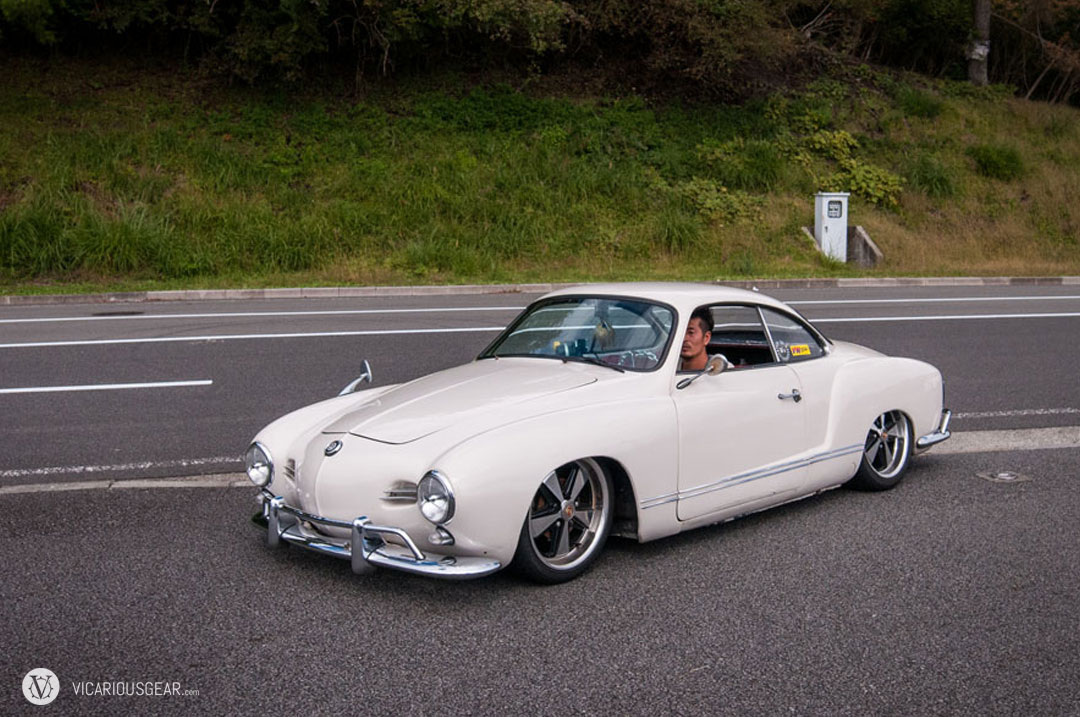 While walking towards the event to scope out closer parking spaces, this Ghia passed us. It barely cleared the 1 inch incline.