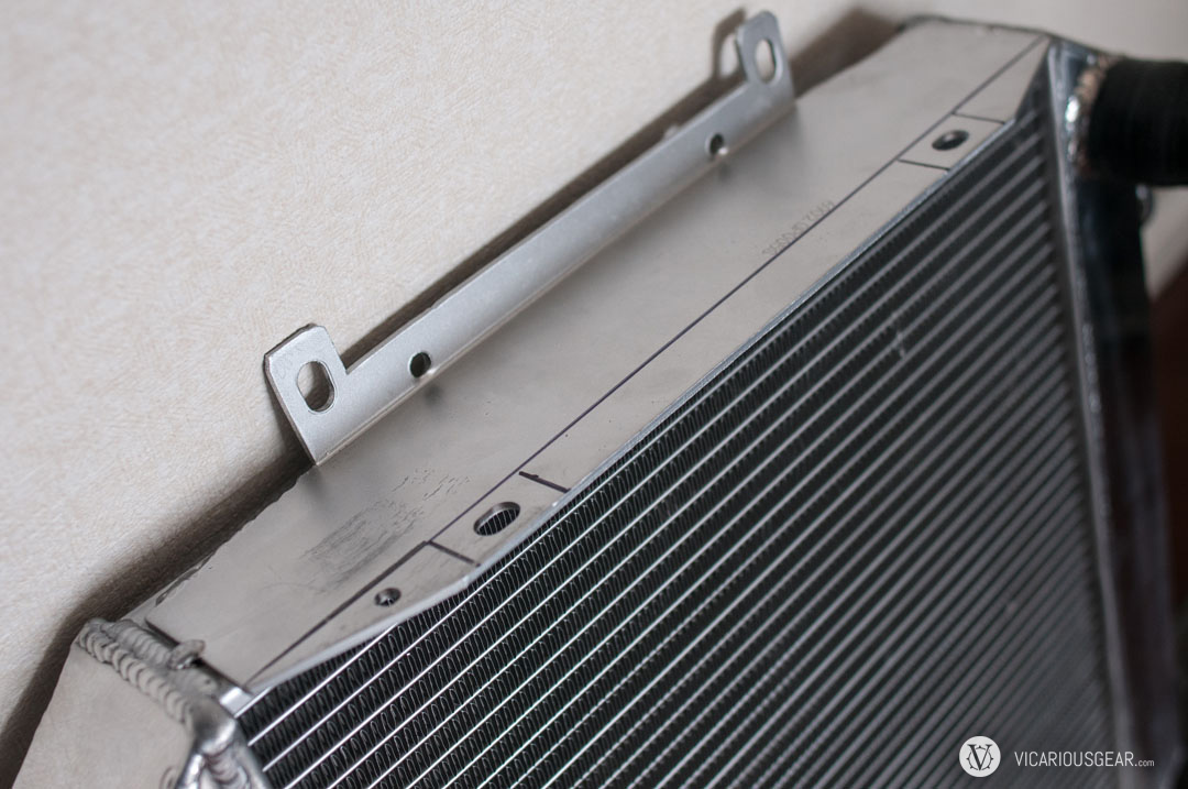 I purchased an aluminum radiator to replace the original copper item. The fan shroud tabs were in the wrong orientation so I had to do some fabrication.