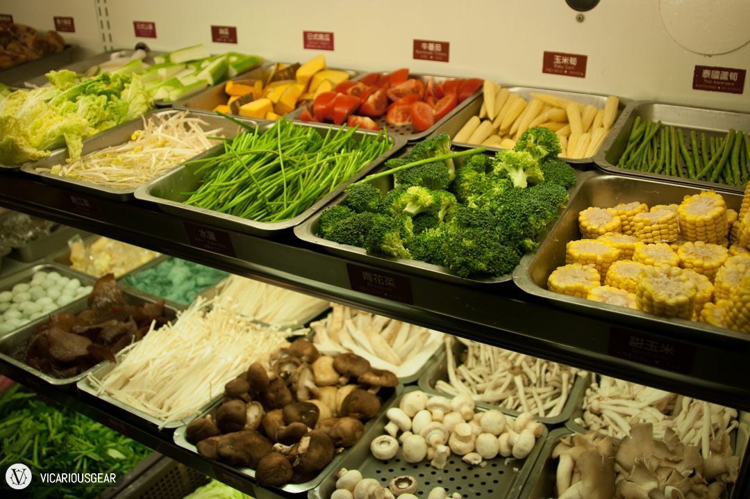 Shortly after our late lunch at Din Tai Fung, Mimi and I met up with our friend Gary who kindly booked a reservation at Mala Yuanyang Hotpot. Mala (马辣) is an all you can eat joint with a few choices in broth to cook your food in. We opted to go for a split pot of spicy (an herbal blend with a kick) and mild. The meat selection consisted of Black Angus beef, sirloin, lamb and chicken.